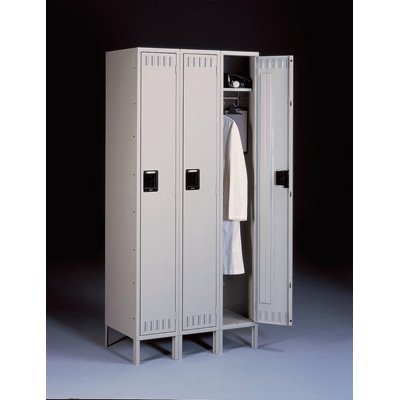 This Tennsco single tier 3-wide steel locker is roomy enough for just about any secured storage application. It is an ideal general purpose locker for factories, schools, hospitals and other locations where coats and clothing are stored. This locker is built to be durable and quiet. Heavy-duty steel construction stands up to the toughest use while rubber bumpers, door stiffeners and locking channels cushioned with rugged polymer materials work together to virtually eliminate the clanging and banging of old lockers. Its lightweight, low friction latching mechanism opens smoothly and easily. Locker handle is recessed inside door face for a smooth, finished look and is more vandal-resistant and safer than protruding handles. The powder-coat finish will maintain its good looks through years of daily use. U.S.A. Storage Type: Single tier locker, Dimensions L x W x H (in.): 36 x 18 x 78, Doors (qty.): 3, Lockable: Yes, Shelves (qty.): 3, Handle Type: Locker handle is recessed inside door, Ventilation: Louvers for ventilation, Foldable: No, Material Type: 16-ga. steel doors & frame, 24-ga. steel body, Finish Type: Powder-coat, Assembly Required: No, Includes: 1 Unit with 3 openings