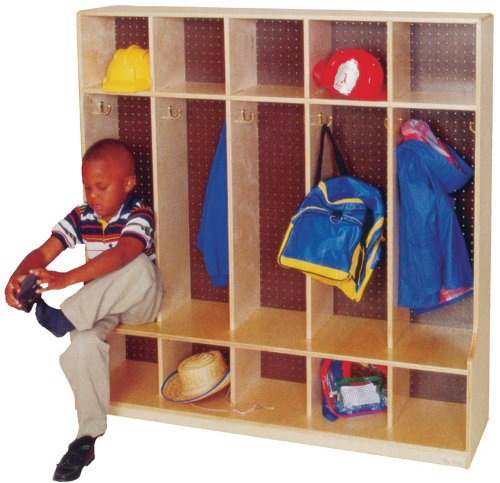 Healthy Kids products enable you to make healthy choices for your early learning environment Lockers provide space-saving storage for children's personal items Store jackets, book bags, shoes and toys 15 separate storage compartments Upper Compartment: 10''D, Lower Compartment: 14''D Dual-Coat hooks in middle compartment for coats and bags Built-in seat design lets children sit down to take off and put on shoes or rain boots Birch wood Heavily Rounded Edges & Corners Glue-Dado-Pin Construction GREENGUARD certified Tuff-Gloss Finishing System Certified CARB-2 Compliant CPSIA Compliant 10 Year Manufacturer Limited Warranty