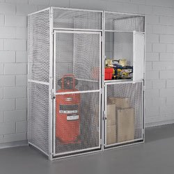 HALLOWELL Modular Storage Lockers are suitable for commercial, industrial, and residential application.16-gauge, 1/2" expanded metal panels. 13- to 14-gauge steel frame/sides; 16-gauge steel shelves. Doors open 180° and have welded padlock hasps. Double-tier design includes non-removable reinforced center shelf. Pre-punched holes on panels allow easy installation. Basic hardware included. Silver zinc powder coat finish. Ships unassembled. Appropriate for lean manufacturing.NOTE: Single-tier starter and double-tier add-on shown.